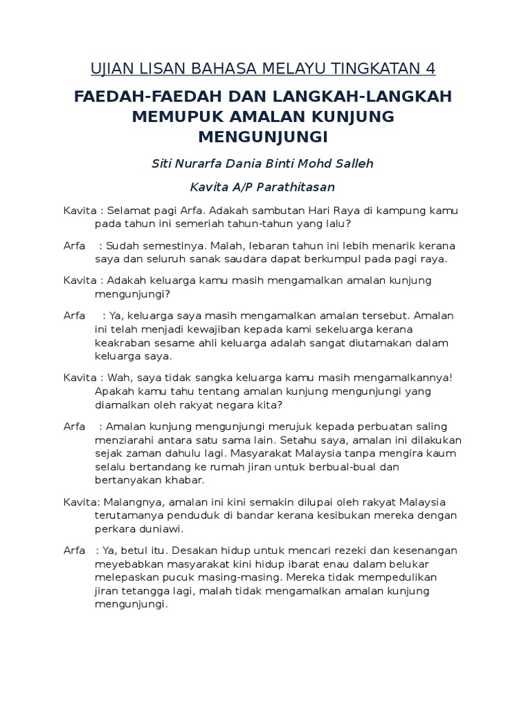 Contoh Teks Ujian Lisan Bahasa Melayu Tingkatan 4 Individu Tolop